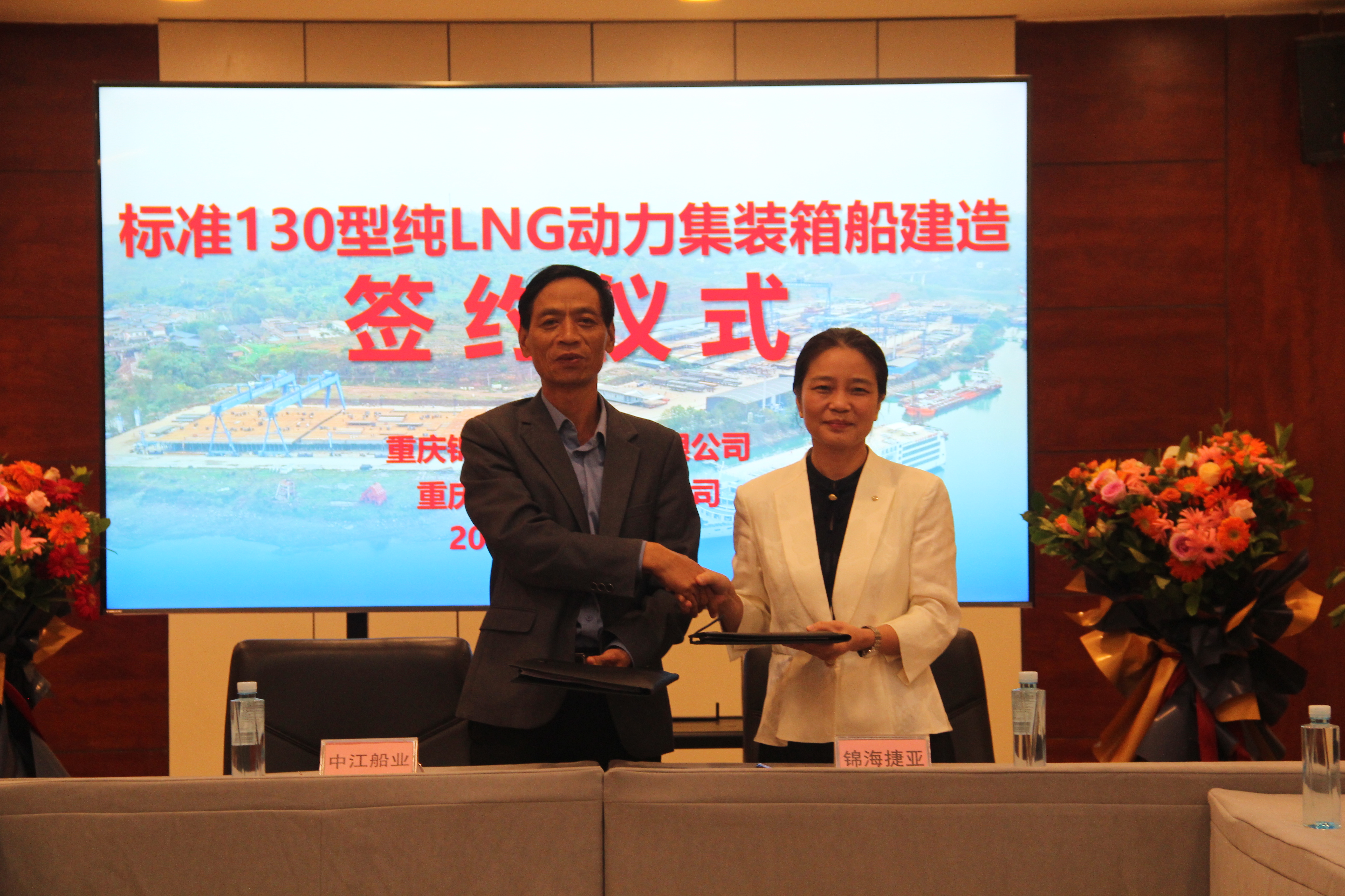 10月17日上午,中江船業(yè)公司與重慶錦海捷亞船務(wù)公司達(dá)成重要合作,成功簽約一艘標(biāo)準(zhǔn)130型純LNG動(dòng)力集裝箱船建造訂單。