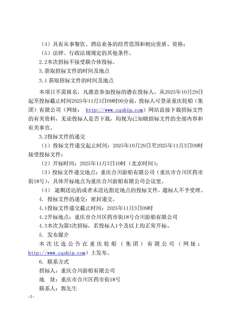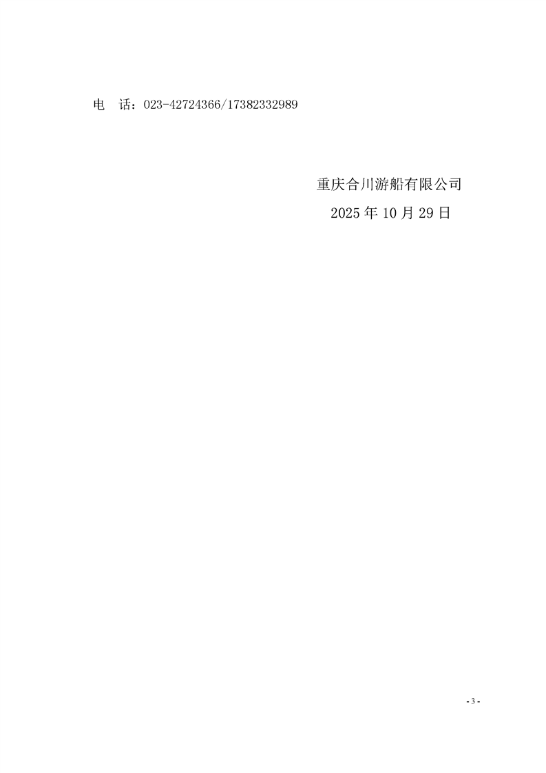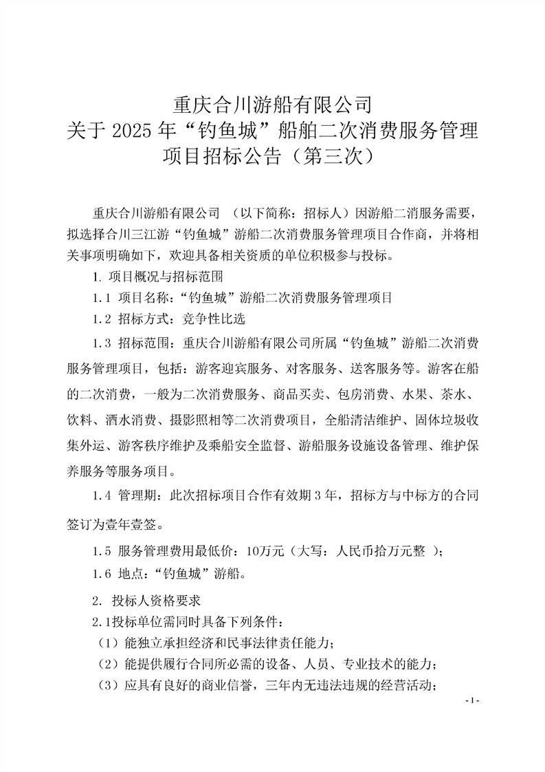 合川游船公司2025年釣魚城船舶二消服務(wù)管理招標公告(第三次)
